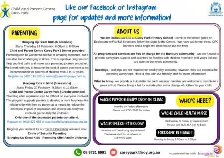 Child and Parent Centre Carey Park host a variety of on-site service providers. Services are available free of charge, however appointments are required for some providers.