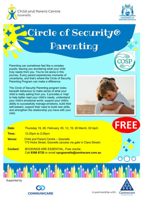 The Circle of Security Parenting is a FREE program that looks beneath behaviour to make sense of what your child is really asking from you.