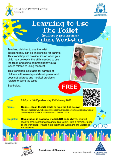 A FREE workshop to provide tips, the skills needed to use the toilet, and some common behavioural issue related to using the toilet.