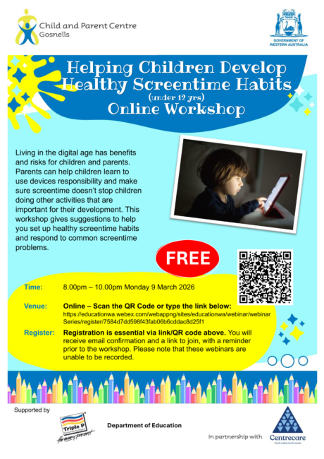 This FREE workshop gives suggestions to help parents and carers set up healthy screentime habits and respond to common screentime problems.