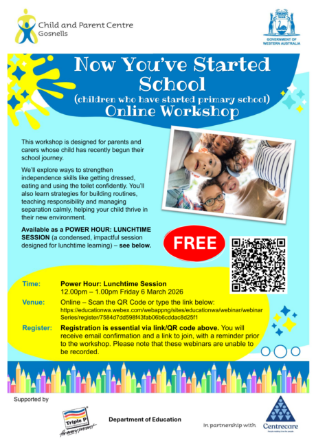A FREE workshop designed for parents and carers whose child has recently begun their school journey.