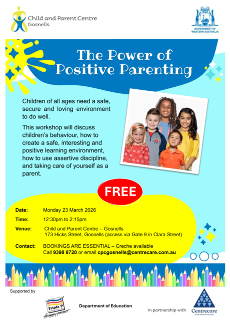 A FREE Triple P Workshop specifically for exploring how to create a safe, interesting and positive learning environment.